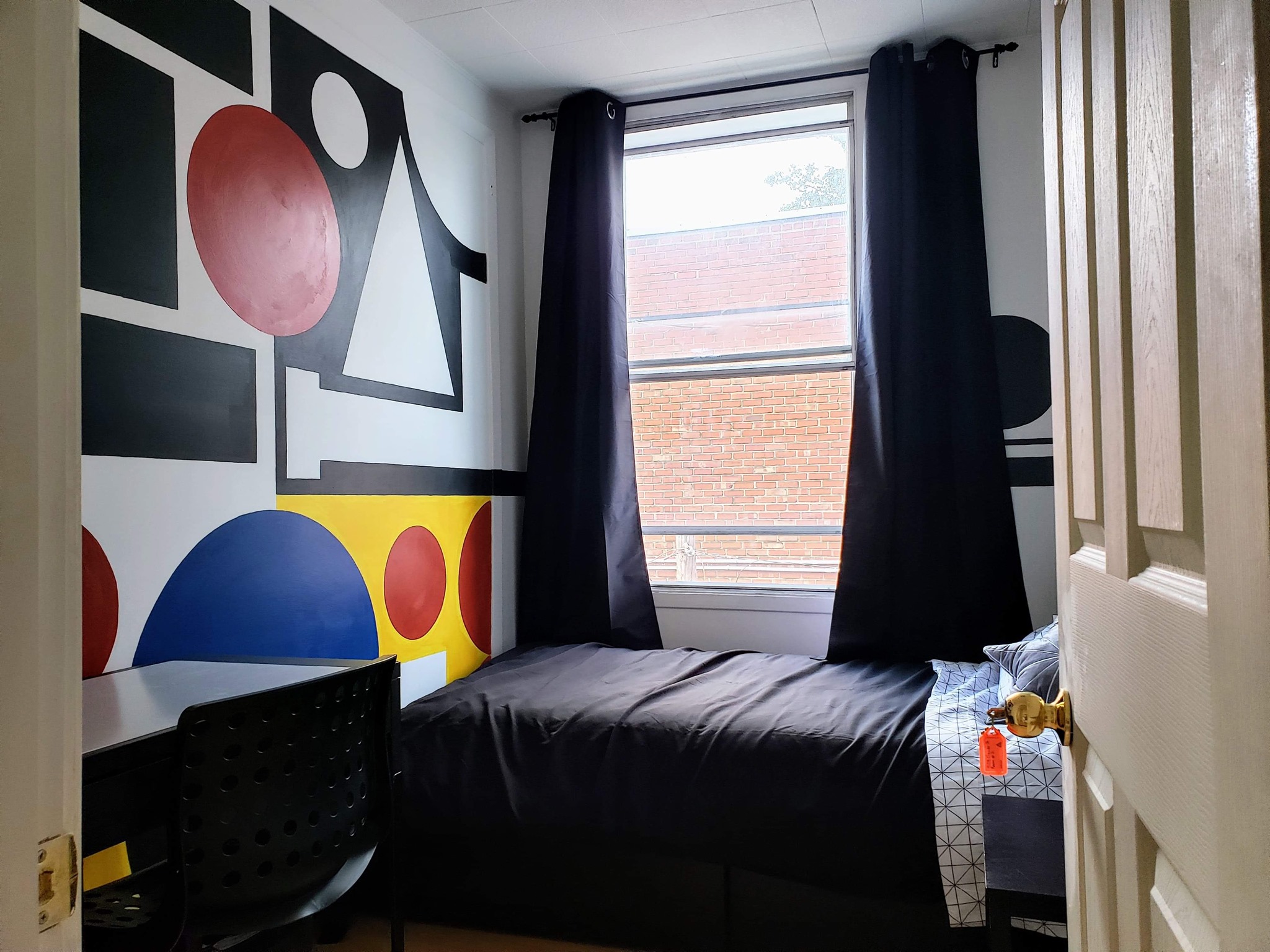 We couldn’t help it with some color 🙂 A full hand painted mural, reproduction of an Auguste Herbin painting, a french painter of modern art.
