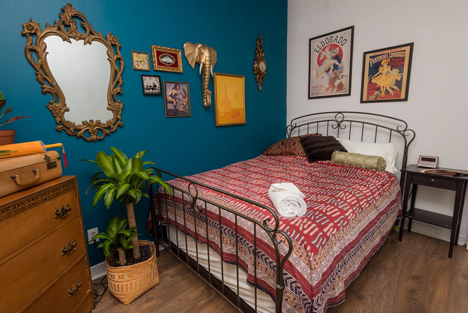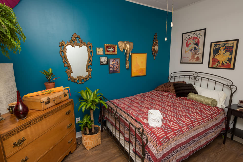 Bright and artsy private room on the second floor, decorated in a quirky and fun Bohemian Chic style.